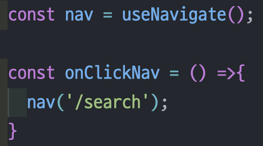이제 버튼이 클릭 됐을 때 /search로 이동하기 위해서, onClick 핸들러에서 nav 함수를 호출하고 인수로 이동할 경로를 넣어준다.