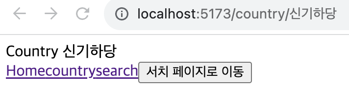 country를 누르면 /country로 이동하고, search를 누르면 /search로 이동하는 것을 확인할 수 있다.