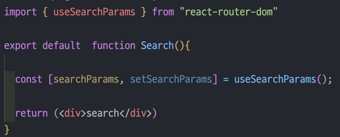Search 컴포넌트로 이동 후 Query String를 불러오는 useSearchParams 커스텀 훅을 불러온다.