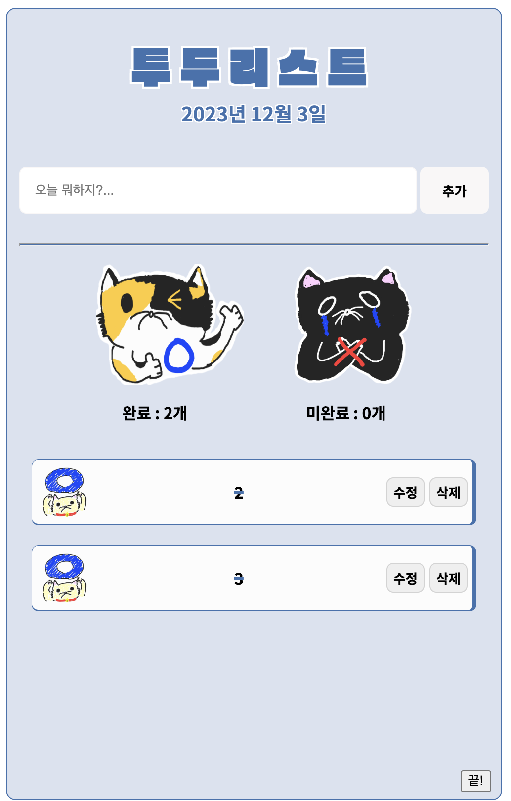 | 투두리스트 휴지통 만들기 (데이터 옮기기!) (0) | 2023.12.06 |