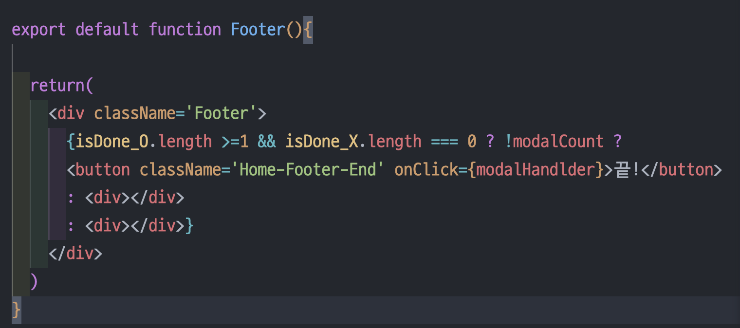 하지만 완료 모달 버튼이 페이지의 하단부에 들어가게 되면서, 임시방편으로 사진처럼 최상위 태그에 그냥 바로 썼습니다.