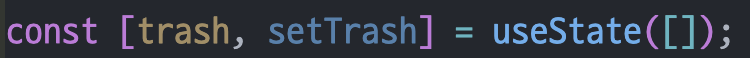 삭제 요소를 저장할 trash State를 선언해 줍니다.