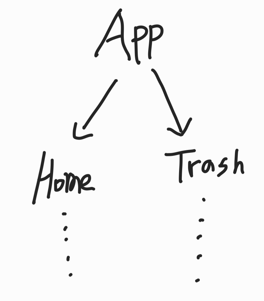 물론 최상위 컴포넌트인 App 컴포넌트를 사용하면 간단하게 옮길 수 있습니다! 그러나 페이지의 최종 컴포넌트를 각각 Home.jsx와 Trash.jsx로 나눠놓은 상태에서, 다시 최종 컴포넌트의 최종 컴포넌트를 만드는 꼴이 된다는 생각이 들었어요