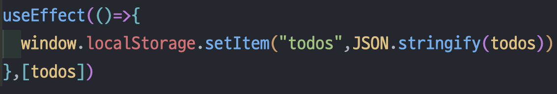 todos State가 업데이트될 때마다, useEffect를 통해 로컬스토리지의 “todos”에 todos State를 업데이트시킵니다.