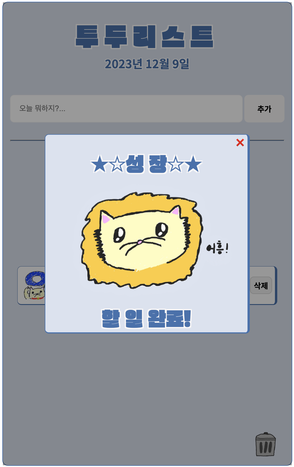 | 투두리스트 휴지통 만들기 (데이터 옮기기!) (0) | 2023.12.06 |