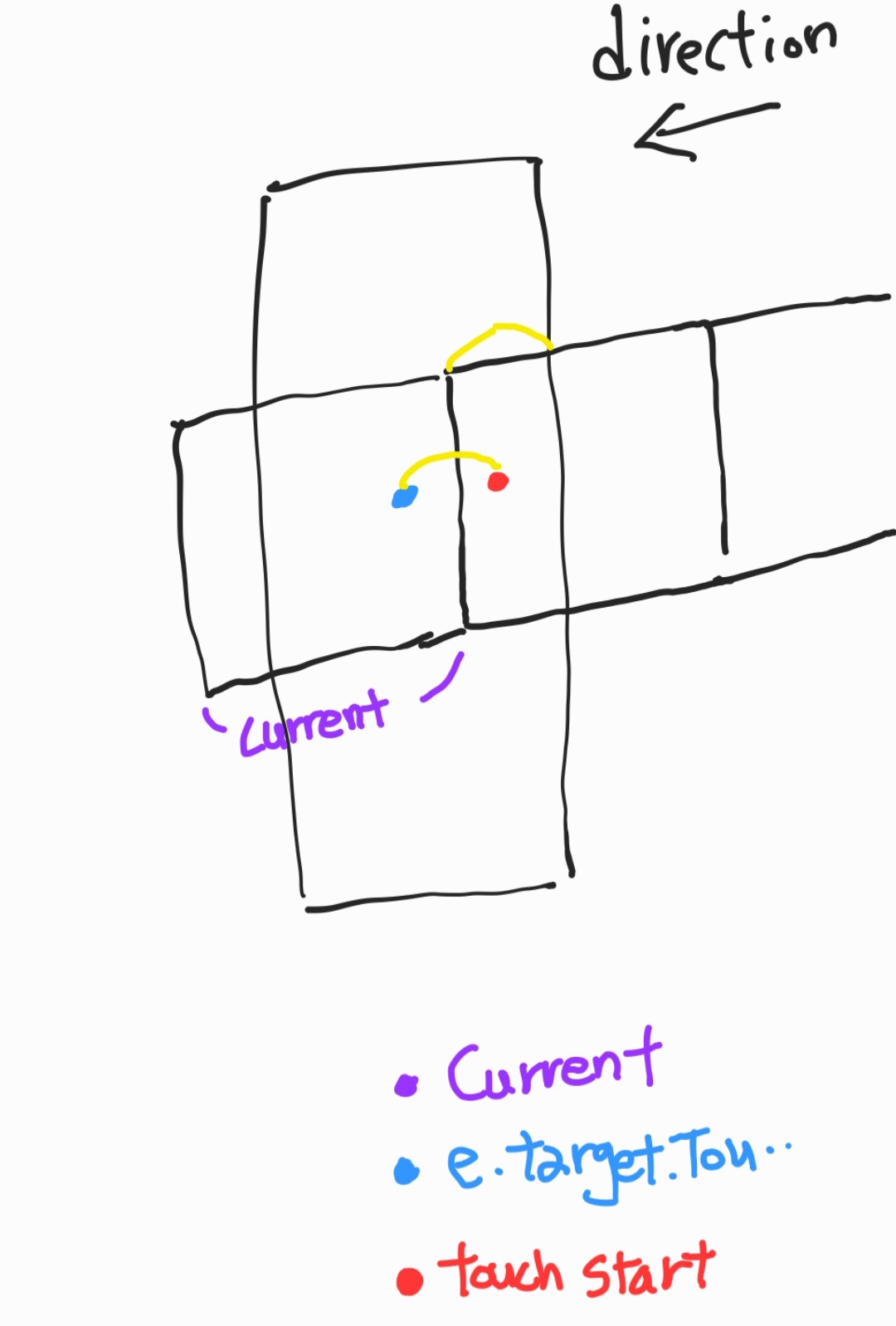 (*onTouchMove에서의 e.targetTouches[0].pageX는 터치한 상태로 움직일 때마다 달라집니다.)