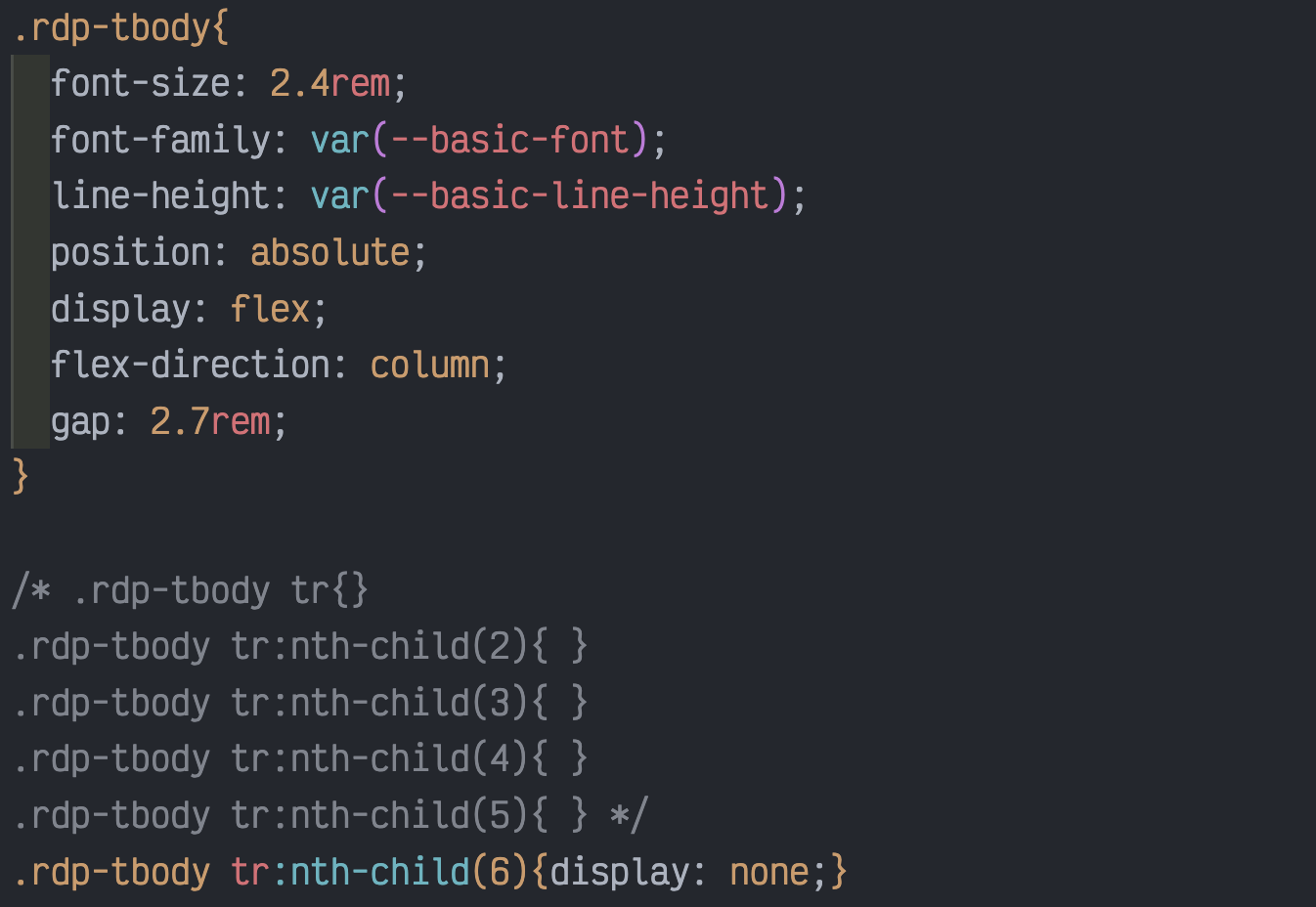 tr을 감싸는 상위 tbody에 flex속성을 적용하고, flex-direction을 통해 세로로 정렬했다. 그리고 gap으로 간격을 조정했다!