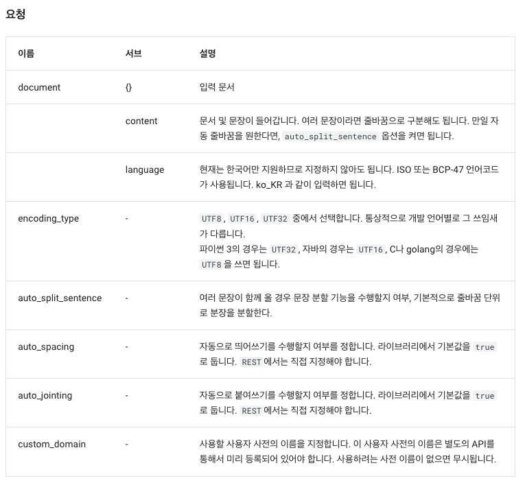 }나는 위와 같이 지정했다. 공식문서에 따르면 현재는 한국어만 지원하기 때문에 language는 생략해도 된다고 한다. 하지만 예시 문장으로 애국가를 넣는 김에 같이 넣어봤다.