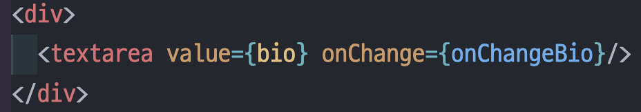 <textarea name={"bio"} value={state.bio} onChange={onChange}/>