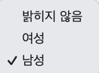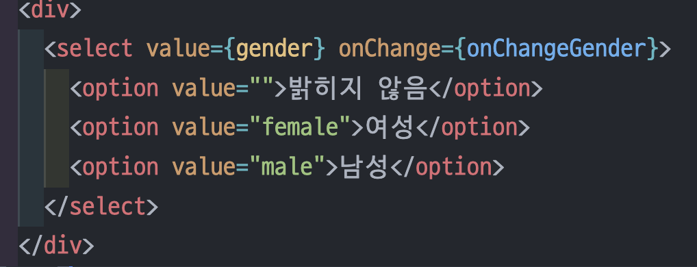 gender의 초기값이 “”이고, select 태그의 value값이 gender이므로 초기값은 '밝히지 않음'이다.