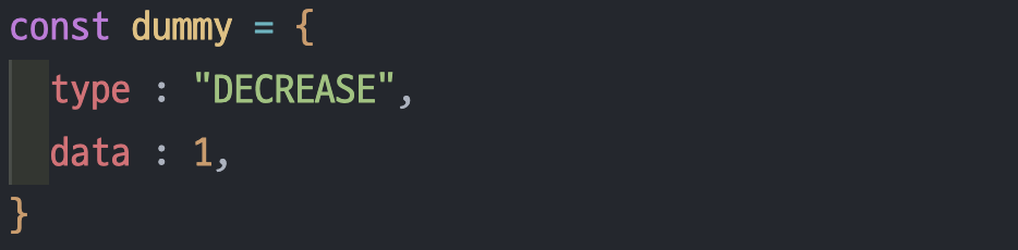 상태변화를 유발하는 dispatch 함수가 호출이 되면 reducer함수를 실행시키게 된다. 이때 dispatch 함수를 호출하면서 어떠한 상태변화가 일어나야 되는지의 정보를 인수로 전달해야 하고, 보통은 객체로 전달한다.