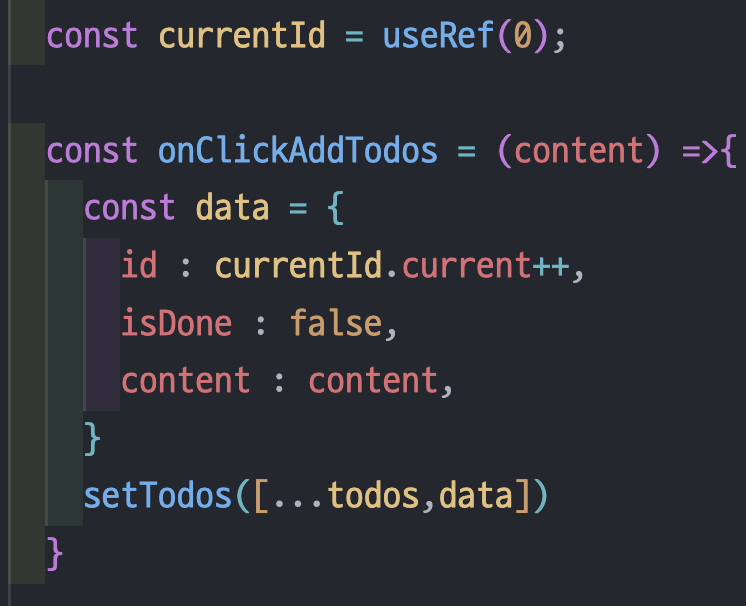마지막으로 기존의 useRef를 통해 id를 제공하던 것을 지우고, 새롭게 얻은 idCount를 적용시켜 주면 id가 꼬이는 일이 없게 되는 줄 알았으나….!
