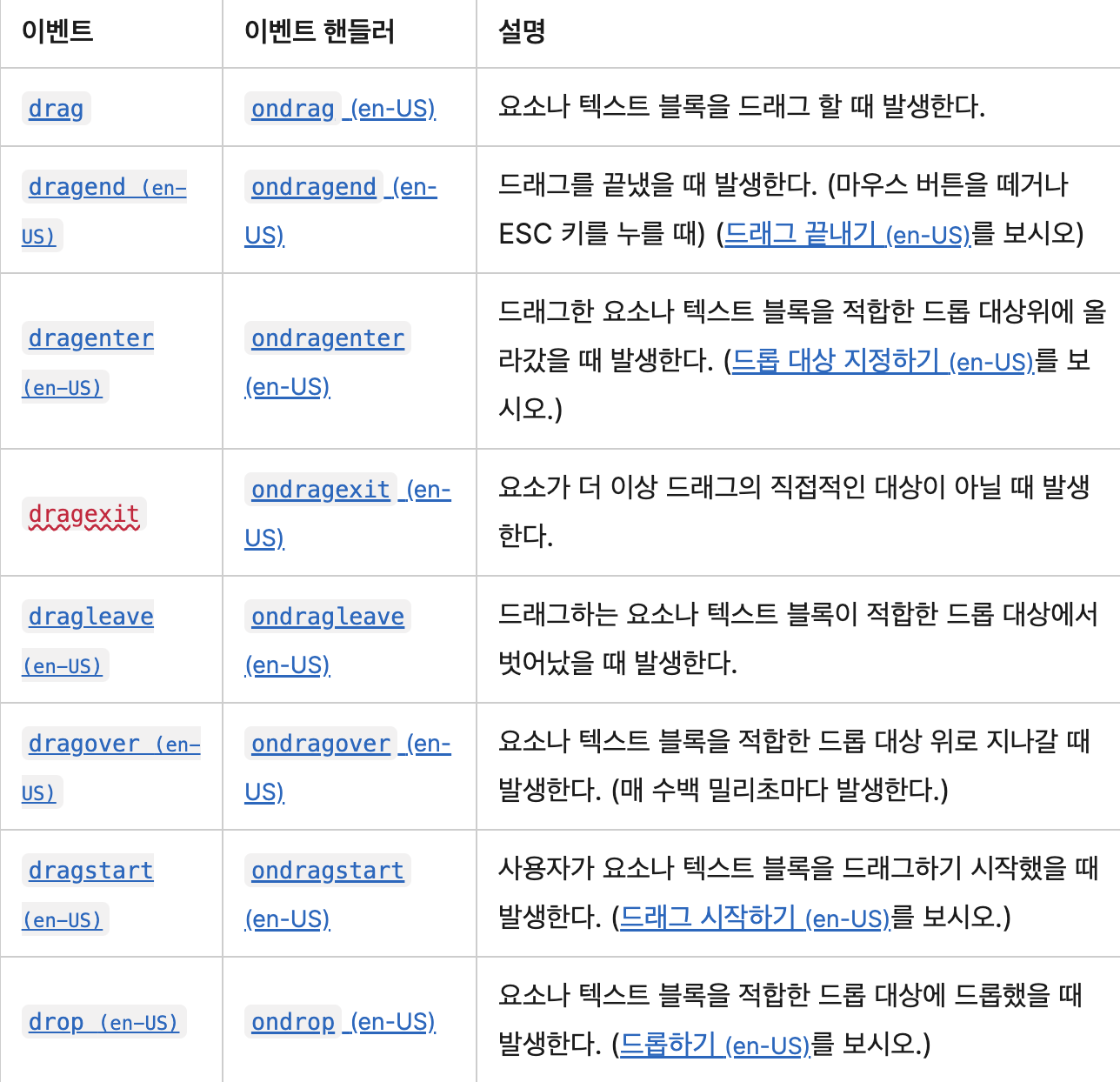 https://developer.mozilla.org/ko/docs/Web/API/HTML_Drag_and_Drop_API