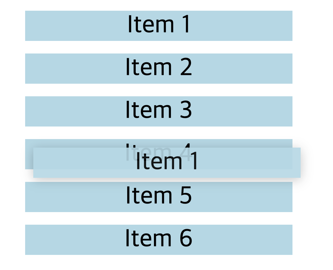 4. splice 메서드를 통해 겹치는 요소 바로 뒤에, 2번에 저장된(현재 드래그된) 요소를 넣는다.