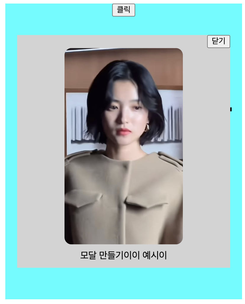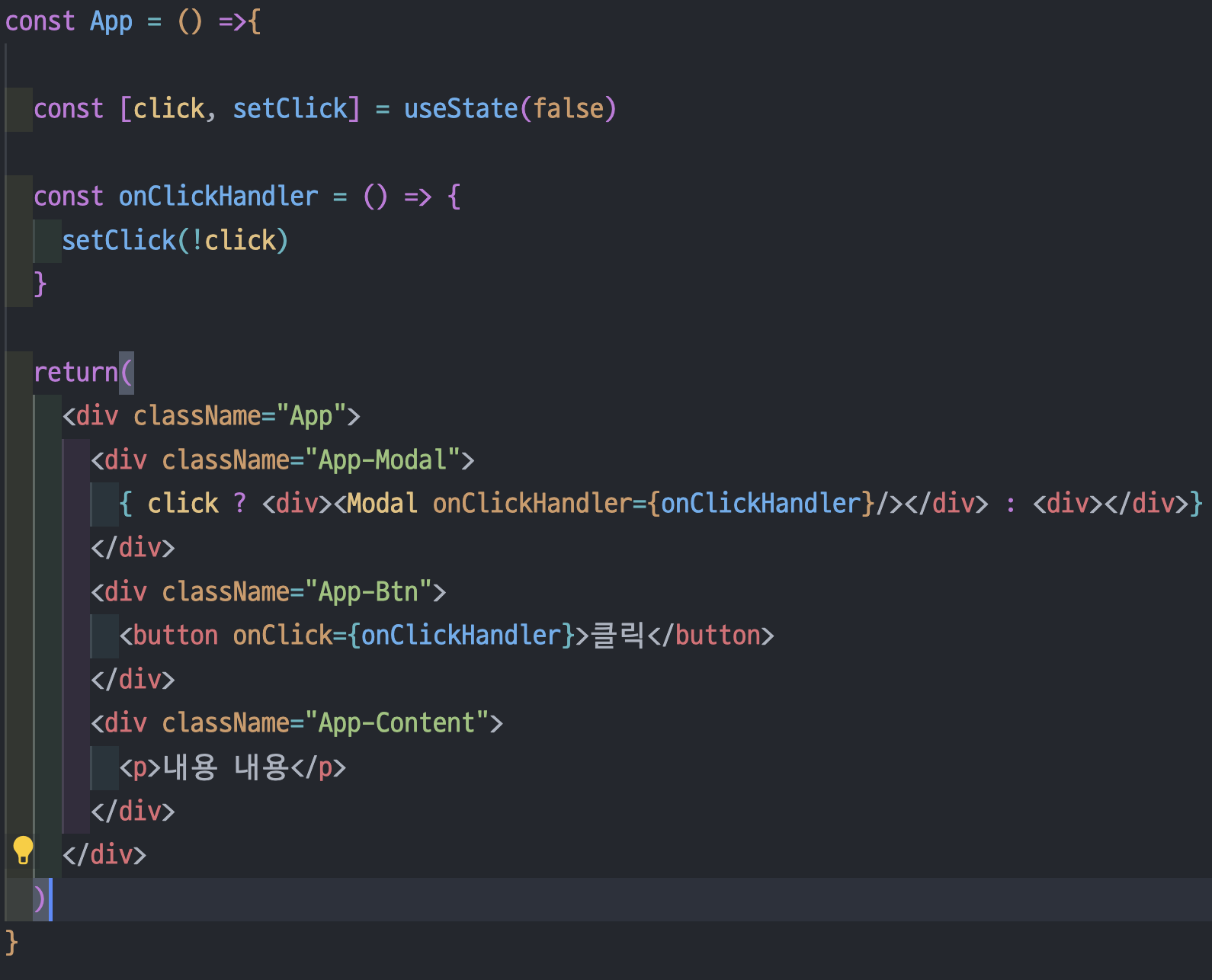 '클릭' 버튼을 누를 때마다 click State 값이 변할 것이고, 이에 따라 모달창의 렌더링 여부가 결정될 것이다.
