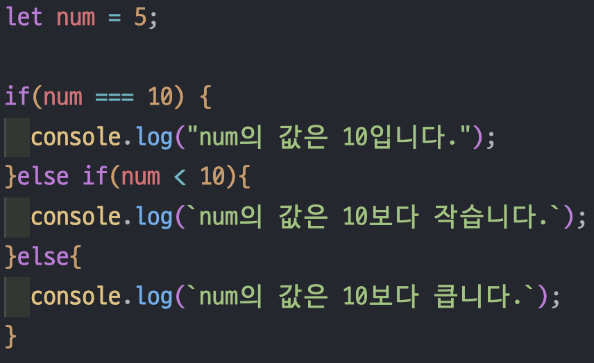 if문의 조건이 성립되지 않았을 경우, 또 다른 코드를 출력하기 위한 조건문이다. 특정조건에 만족, 만족하지 않았을 경우를 구분해 서로 다른 코드를 실행해야 할 때 사용