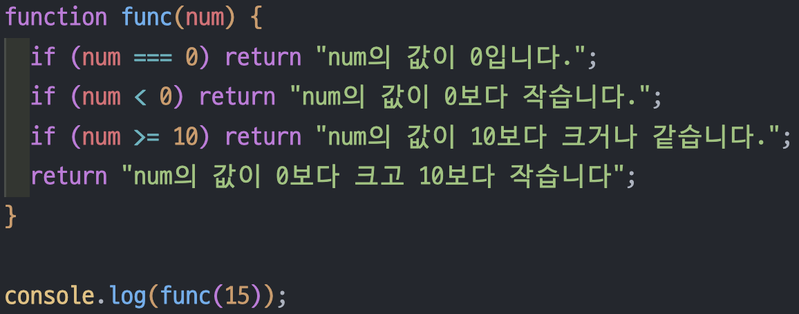 return이 실행되면 이후 코드가 실행되지 않는다는 특성을 활용해서 코드의 구조를 단순하게 만들어주는 패턴