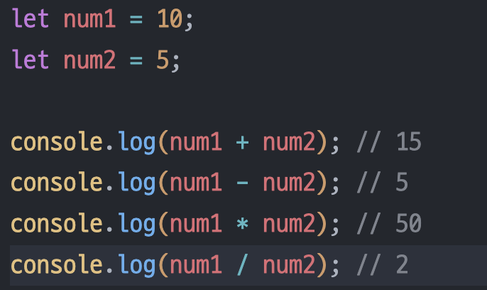 덧셈, 뺄셈, 곱셈, 나눗셈 등이 가장 기본적인 산술연산자