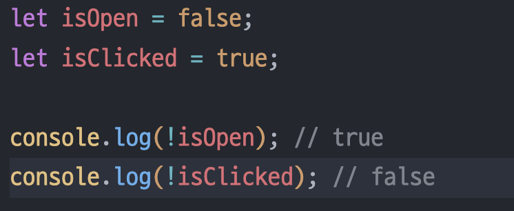 not 연산자 : true를 false로, false를 true로 변경해 줌