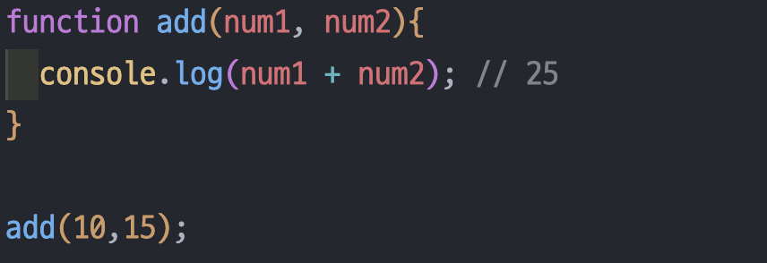 함수의 선언문은 function 키워드를 통해 작성 가능하며, 함수 이름옆의 매개변수를 통해 필요한 값을 전달받을 수 있다. 함수를 호출하면서 매개변수로 넘기는 값을 ‘인수’라고 한다.