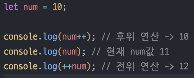 증감연산자도 산술연산자에 포함