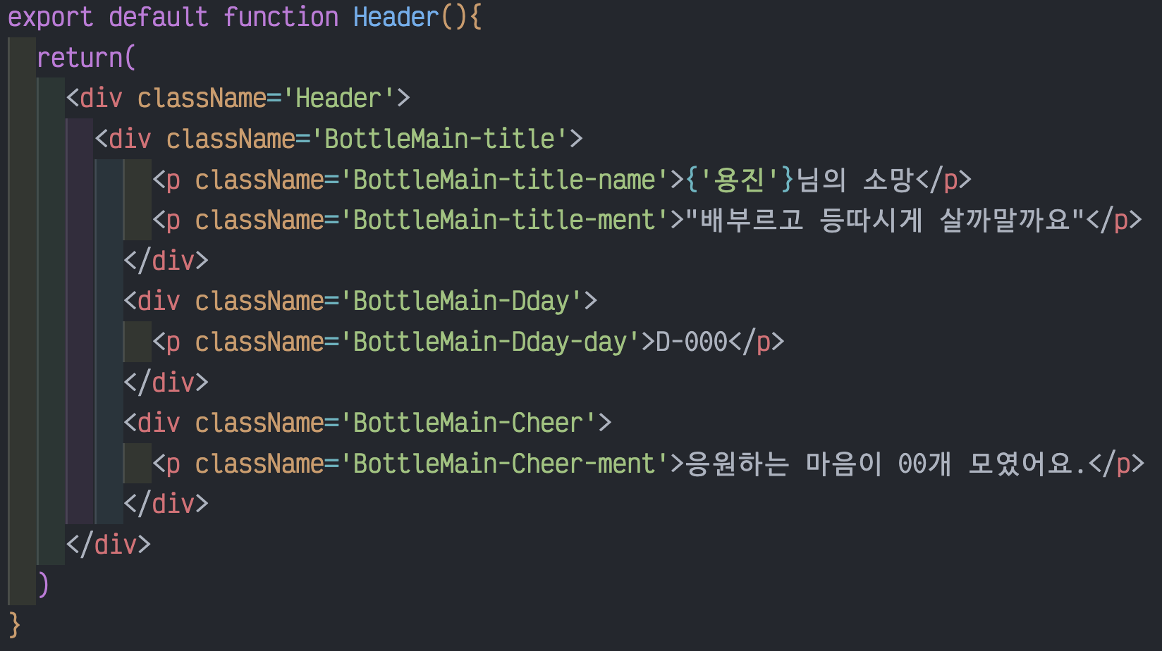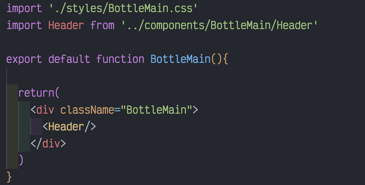 기존의 코드를 지우고 새로 생성한 Header 컴포넌트를 넣어준다. 왼쪽의 코드와 비교하면 훨씬 깔끔해졌음을 알 수 있다.