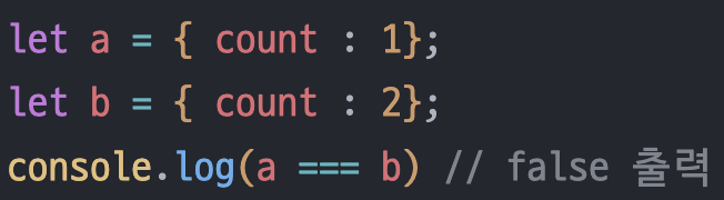 그렇기에 위처럼 a와 b를 비교하면 false가 나온다.