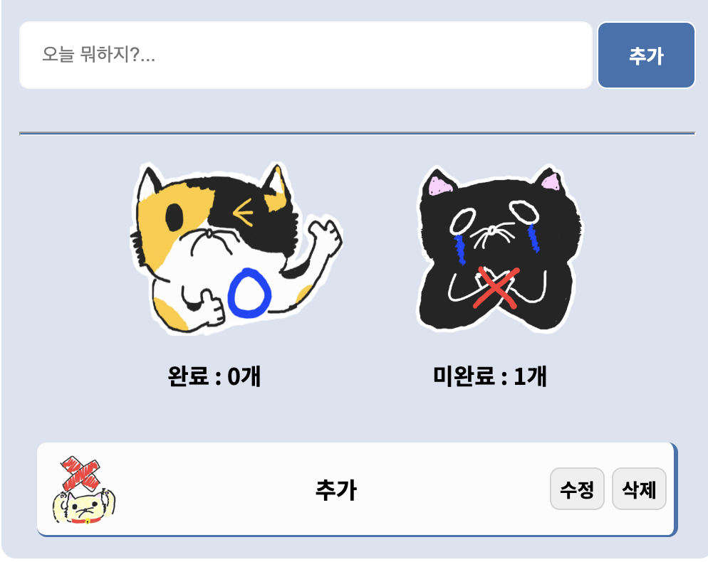 위처럼 todo를 추가하는 input에서는 버튼을 누를 때마다 input box를 초기화시켜 주는 게 사용자가 사용하는데 더 편리할 것이다.